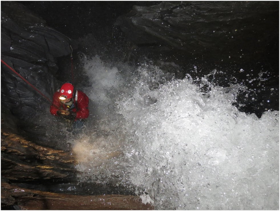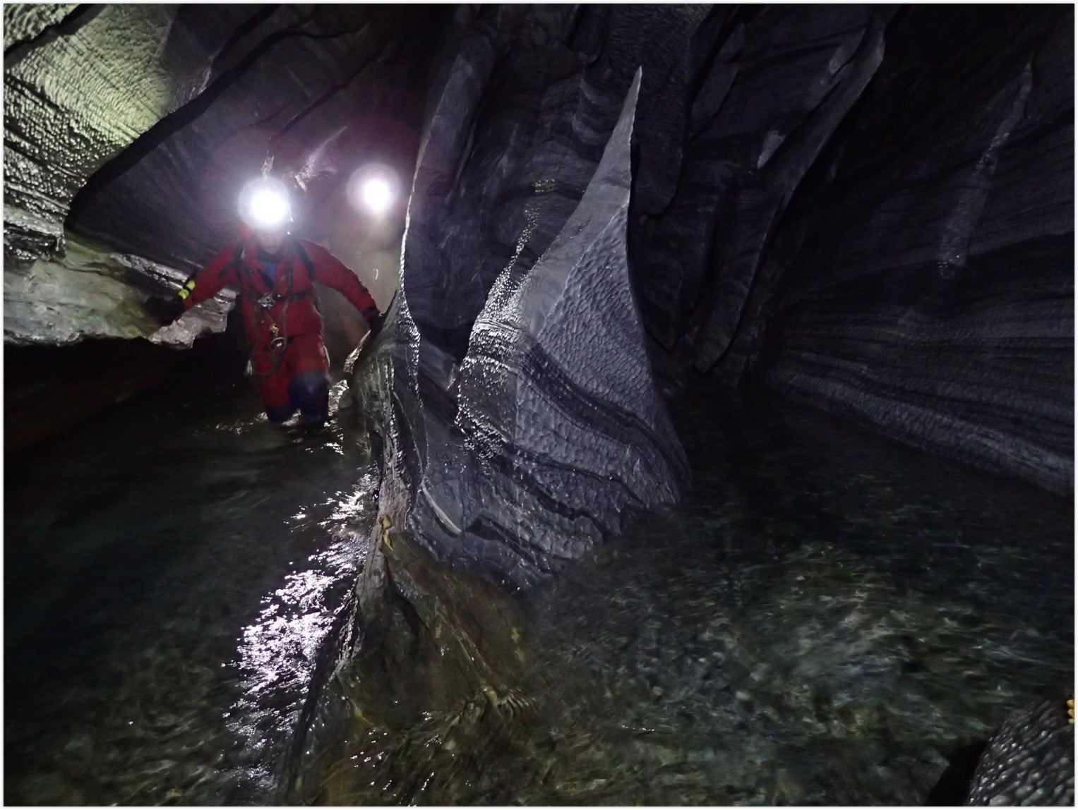 We can only go into the cave in winter, when the glacier has locked up. Summer is way too much water. This picture is from October